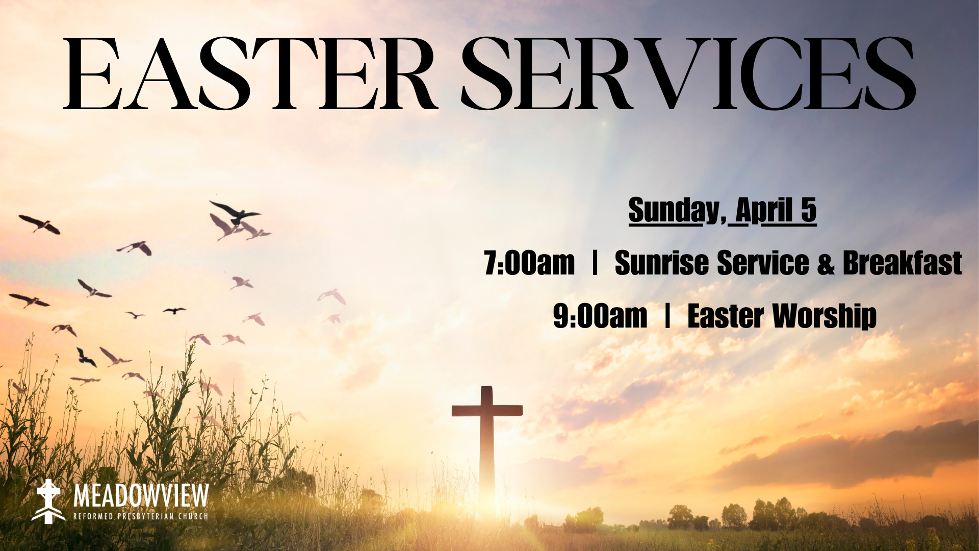 Please join us at 7am for our Easter Sunrise service, followed by breakfast at 7:30 am. Our Worship service will begin at 9 am. He is risen! He is risen indeed!